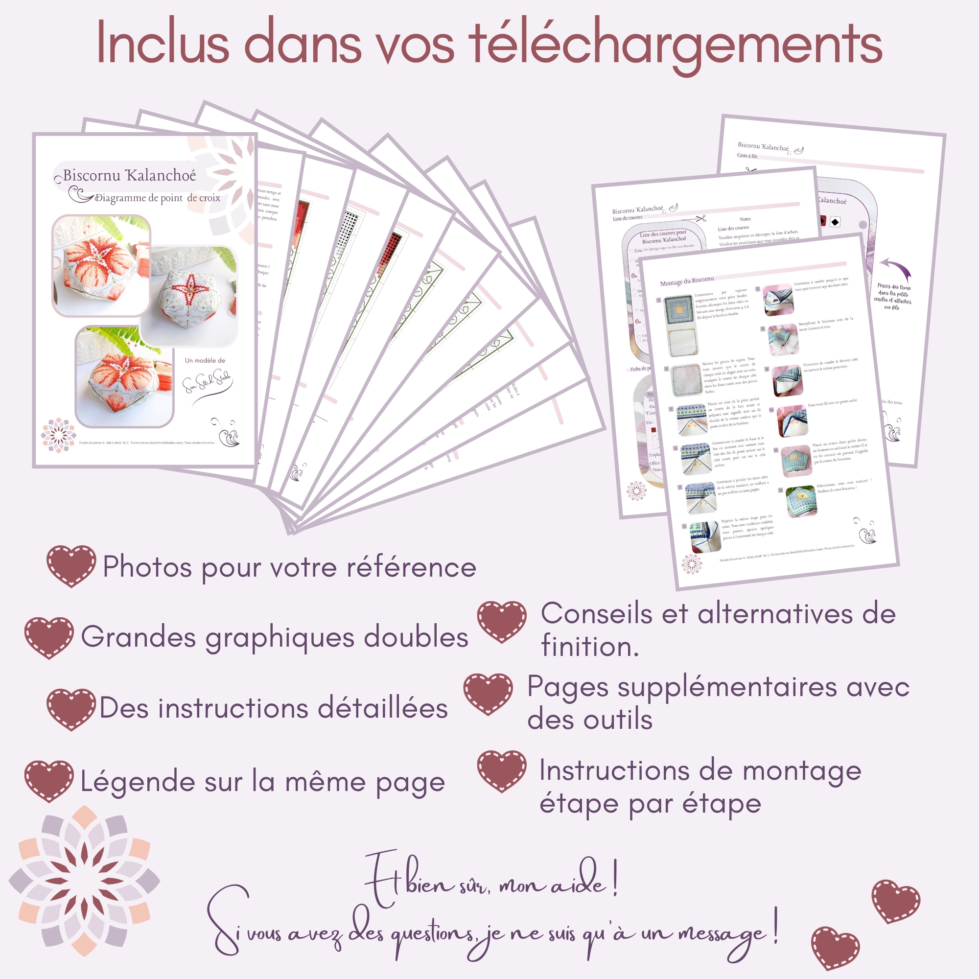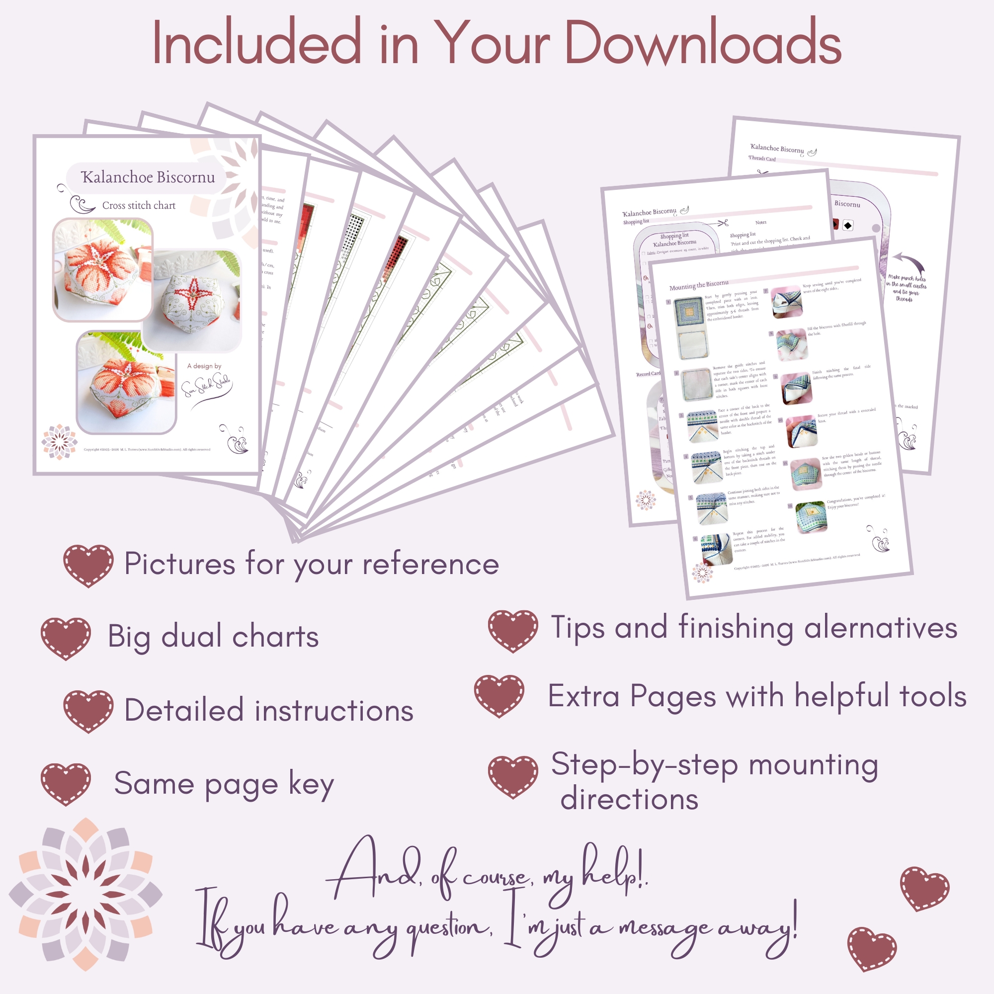 - Puede vender el biscornú terminado citando la autoría del diseño: Sun Stitch Studio.