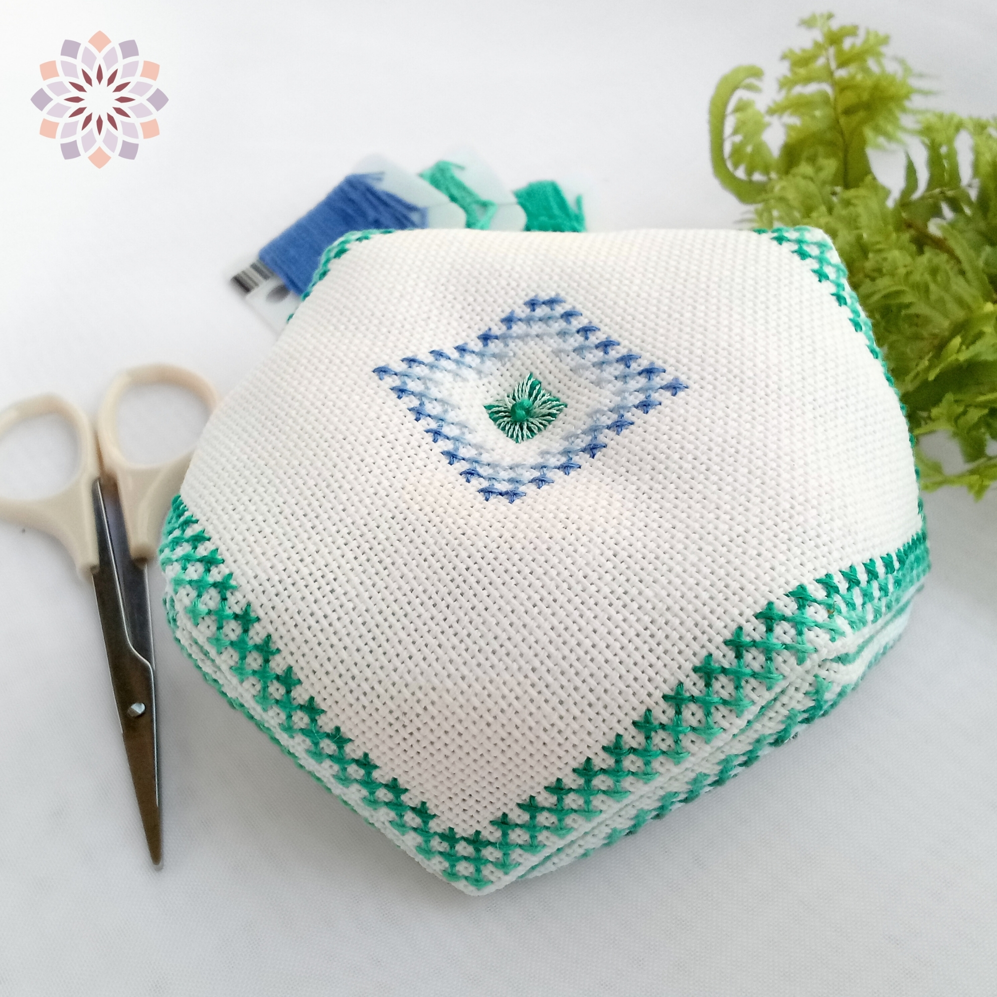 – Instrucciones para ensamblar el biscornú con fotografías que le guiarán durante el proceso.